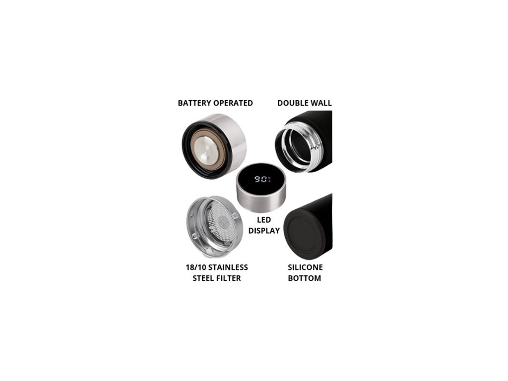 - Vstavaný digitálny teplomer zobrazuje teplotu na LED displeji, takže vždy presne viete, akú teplotu má nápoj. Táto funkcia je obzvlášť užitočná, ak si chcete vychutnať čaj alebo kávu pri ideálnej teplote.